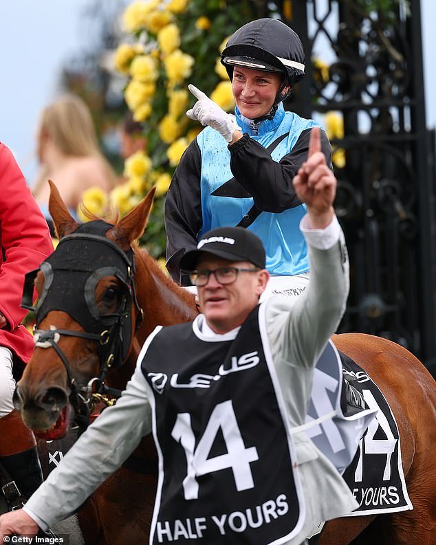 Los fanáticos de las carreras con ojos de águila notaron que Half Yours sangraba por la boca después de que él y Jamie Melham (en la foto) lograron la victoria en la Copa de Melbourne el martes.