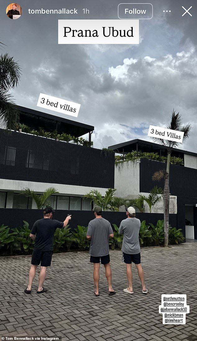Bennallack etiquetó a sus amigos Crosley y Mutton en una foto, que parecía mostrar al grupo inspeccionando sus nuevas villas de tres dormitorios antes de publicar varios videoclips, llevando a sus seguidores a recorrer las villas modernas.