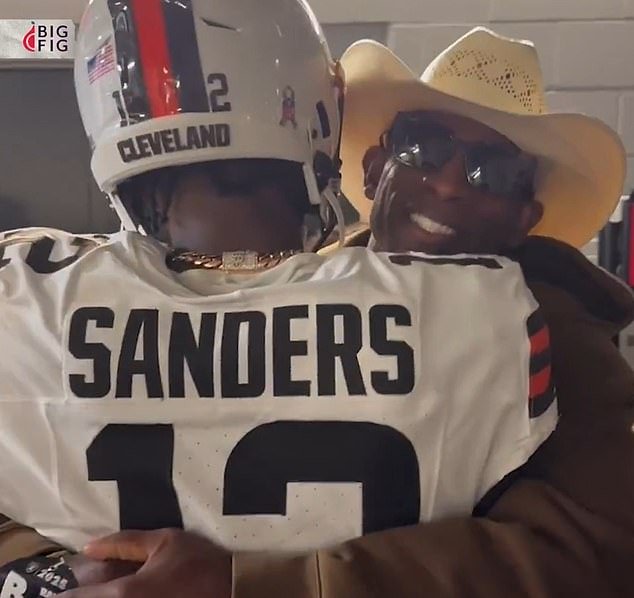 Deion Sanders fue visto besando a su hijo Shedeur en un momento conmovedor antes de su primera apertura en la NFL con los Cleveland Browns el domingo.