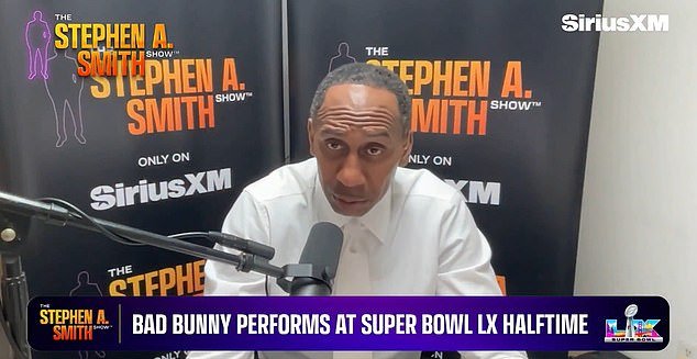 La estrella de ESPN Stephen A Smith parece estar de acuerdo con las críticas de Donald Trump al espectáculo de medio tiempo del Super Bowl de Bad Bunny.
