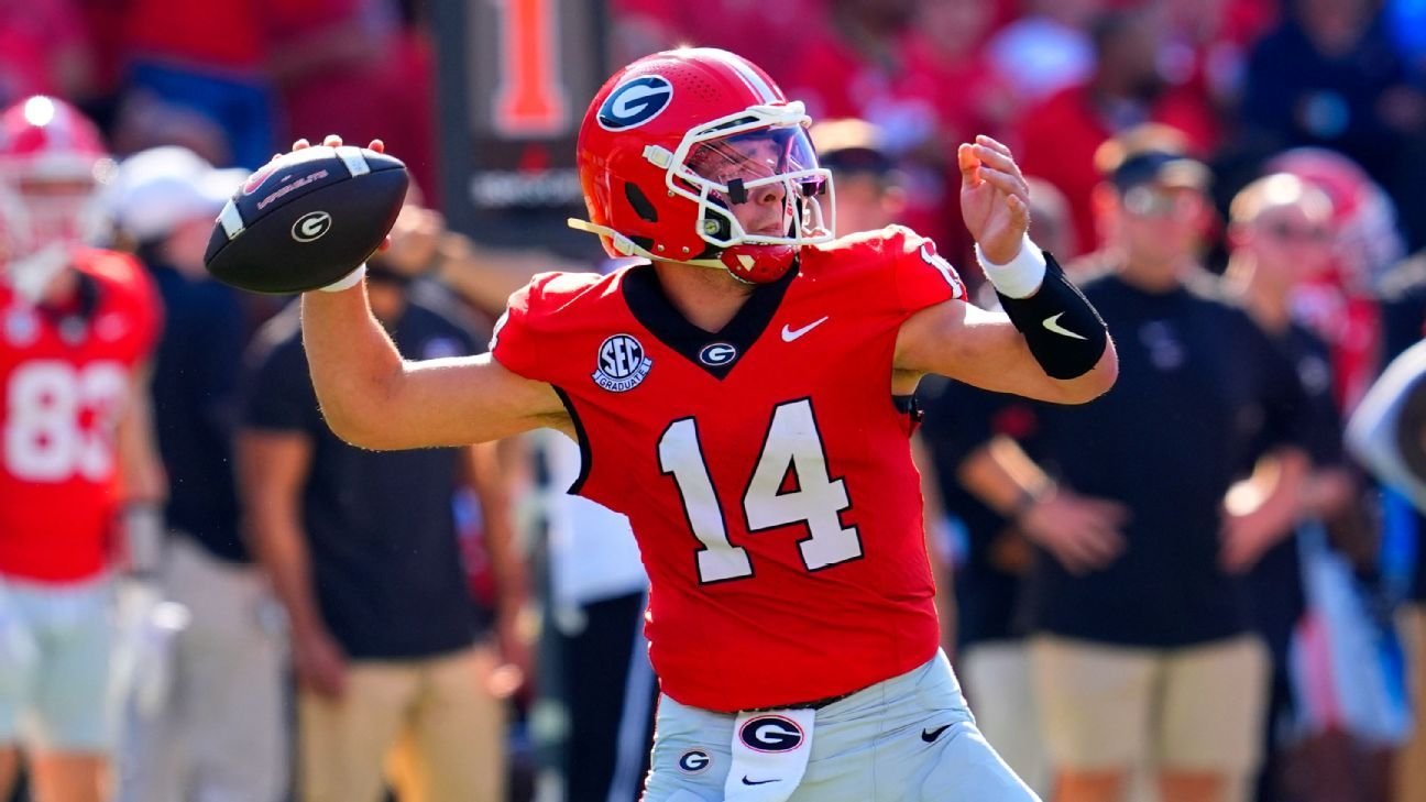 ATHENS, Georgia – El entrenador Kirby Smart le dijo al mariscal de campo de Georgia, Gunner Stockton, que no iba a correr mucho en el partido del sábado contra Ole Miss como medida de precaución debido a una lesión en el oblicuo que sufrió en la victoria de la semana pasada en Auburn.