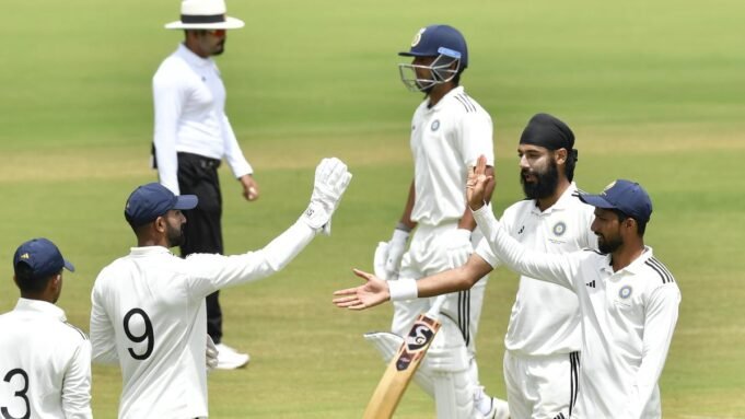 El domingo, en el BCCI Co Ground (1), la región sur fue una fructífera sesión matutina para cerrar la región norte el último día de su semifinal de trofeo Dulip.