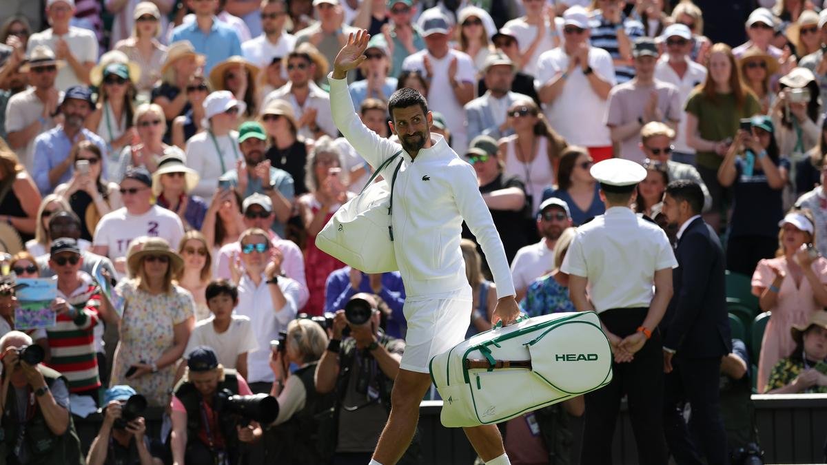 Novak Djokovic de Serbia reconoció el campeonato de tenis Wimbledon 2025 en Londres el 3 de julio de 2025. Crédito de la foto: Getty Fig